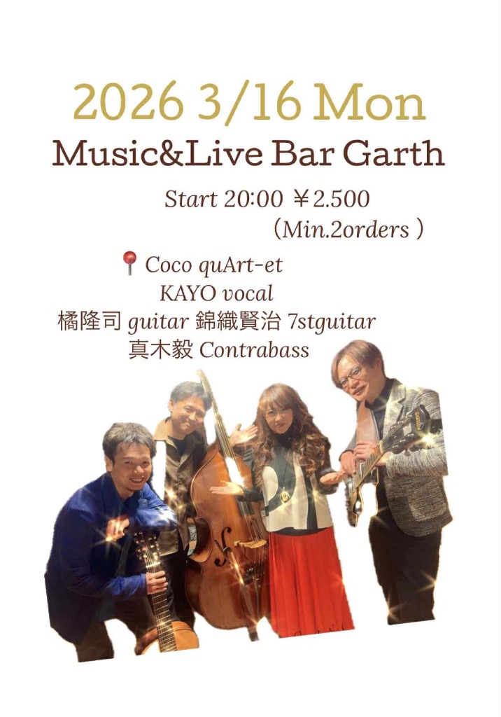 Garth Music Live & Bar(ガースミュージックライブ&バー)のホームページへようこそ!