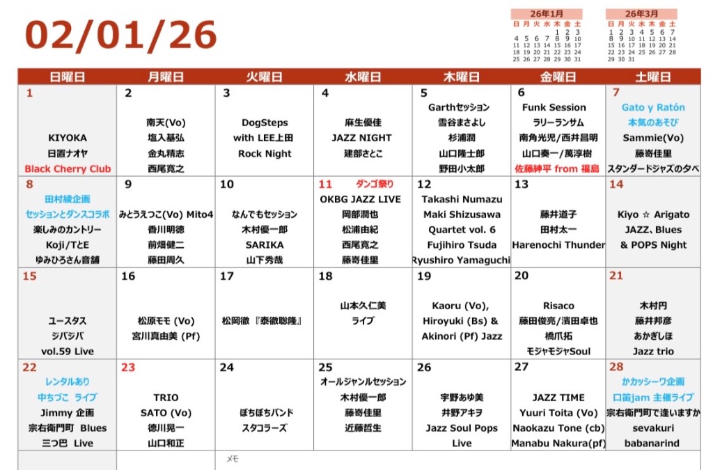 ほぼ毎日、ミュージックライブ開催!(大体、20:00〜22:00ぐらい)
