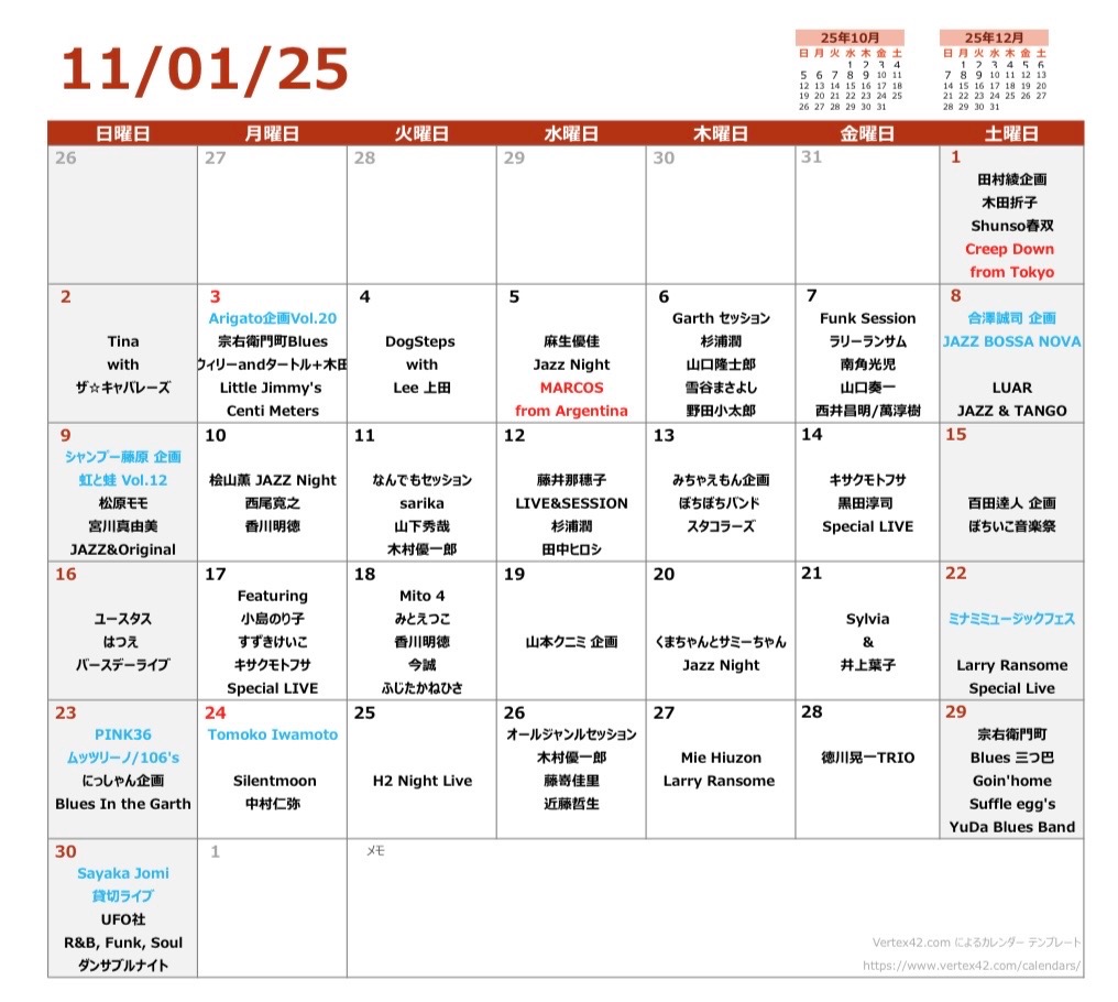 11月のライブ予定です