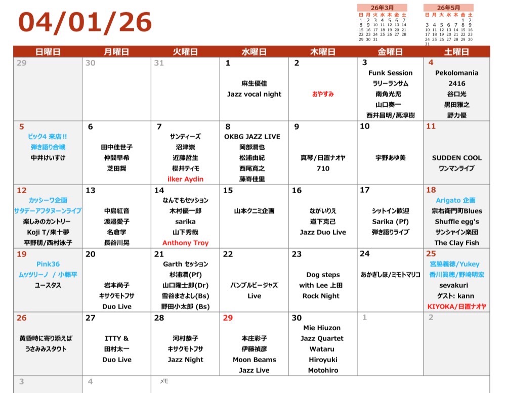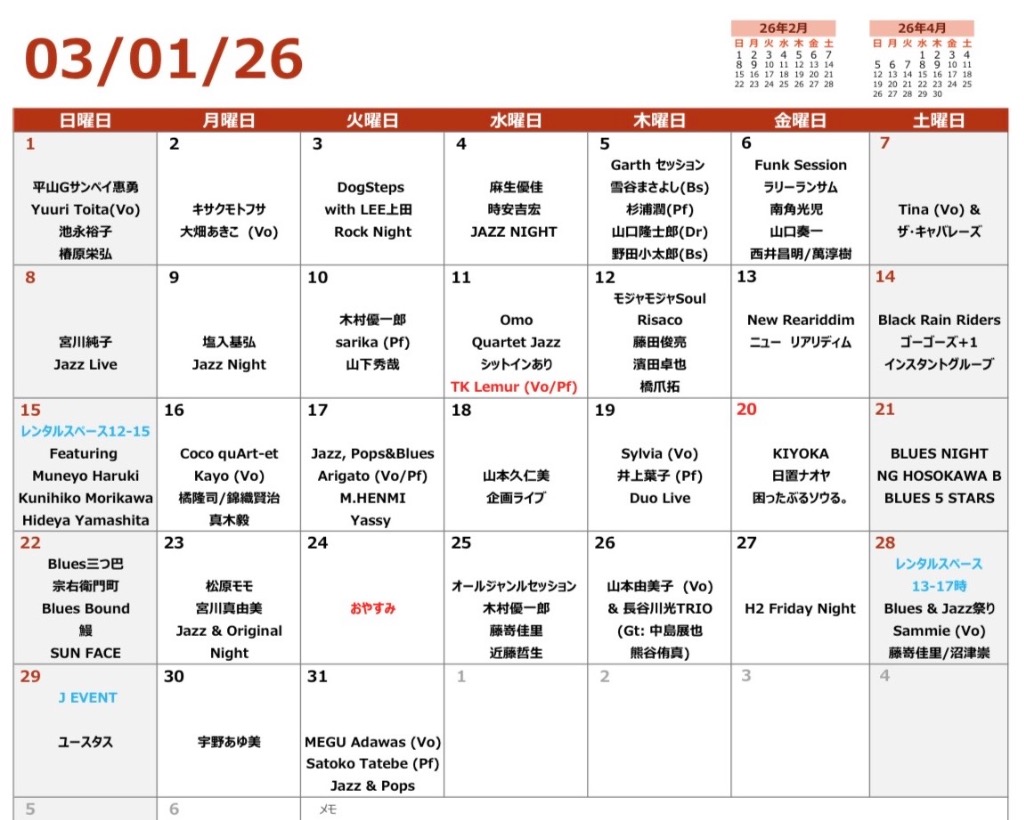ほぼ毎日、ミュージックライブ開催!(大体、20:00〜22:00ぐらい)