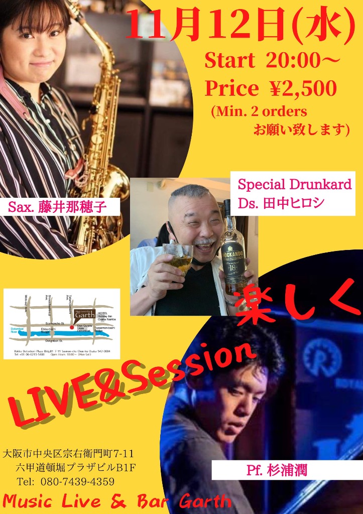 楽しくLive&Session 藤井那穂子/杉浦潤 ゲスト呑助: 田中ヒロシ at Garth