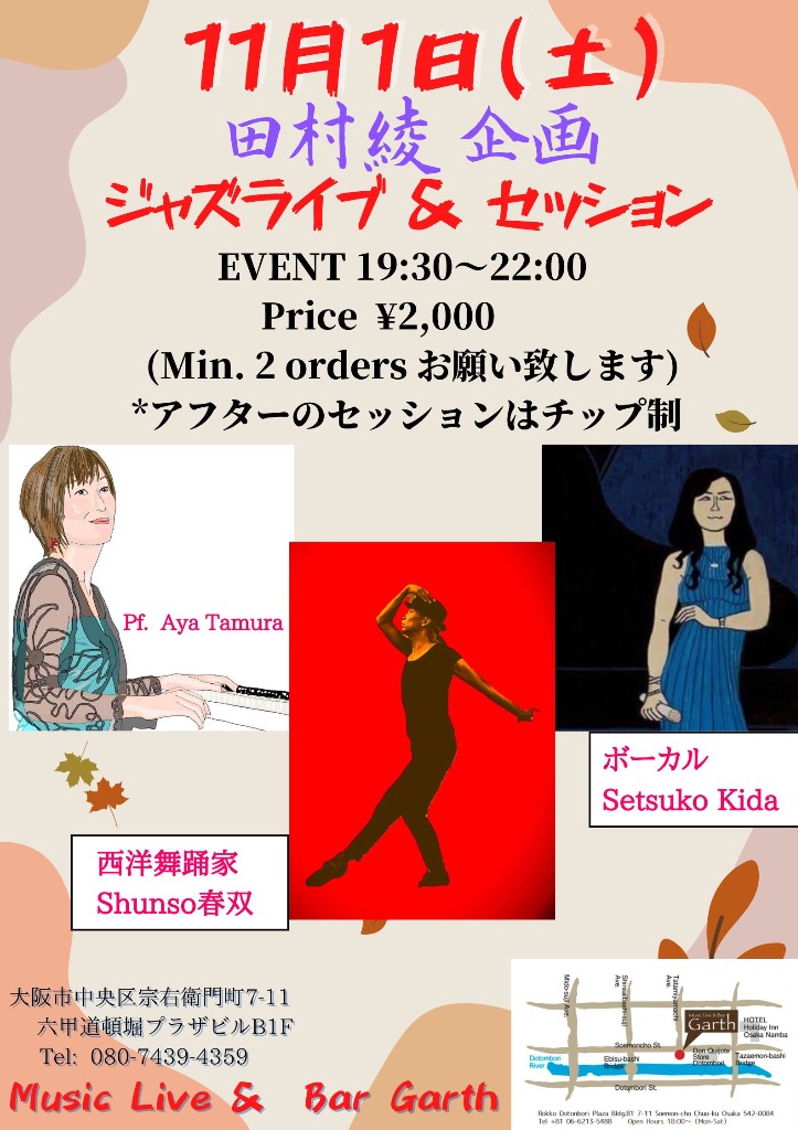 Kaoru (Vo), Hiroyuki (Bs) & Akinori (Pf) JAZZ Live at Garth